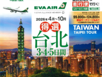 仙台 台北 直行便で行く‼ 2026年4月~10月 得選 台北 3・4・5日間 【発着地】仙台空港 【出発期間】2026/4/1~2026/10/31 【旅行代金】99,800円~124,800円(大人お一 […]