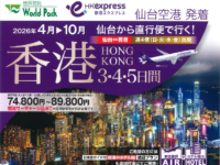 仙台空港から直行便で行く! 香港 3・4・5日間 【発着地】仙台空港 【出発期間】2026/4/1~10/30(週4便 日・火・水・金 出発) 【旅行代金】大人お一人様74,800円~89,800円(大人お一人様/3日 […]