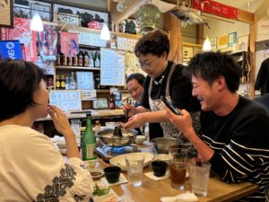 三陸の幸を楽しみながら、先輩移住者のみなさんと交流タイム