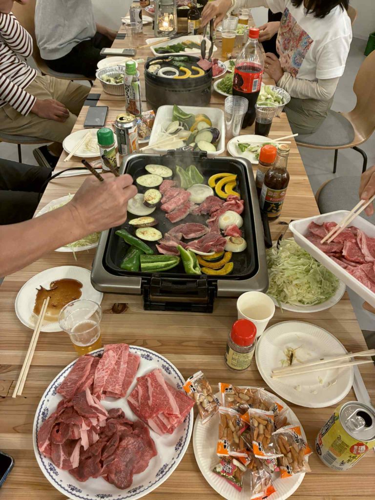夕方以降、雨足が強くなることが予想されたため、安全を優先して屋外での食事から屋内での焼肉パーティーに変更。