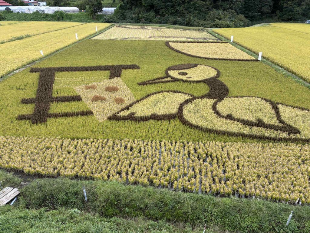旅の終わりは、一方井(いっかたい)・浮島の田んぼアートへ。