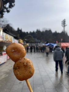 自由時間をとり、それぞれお守りやおみくじ、出店を見たりします。