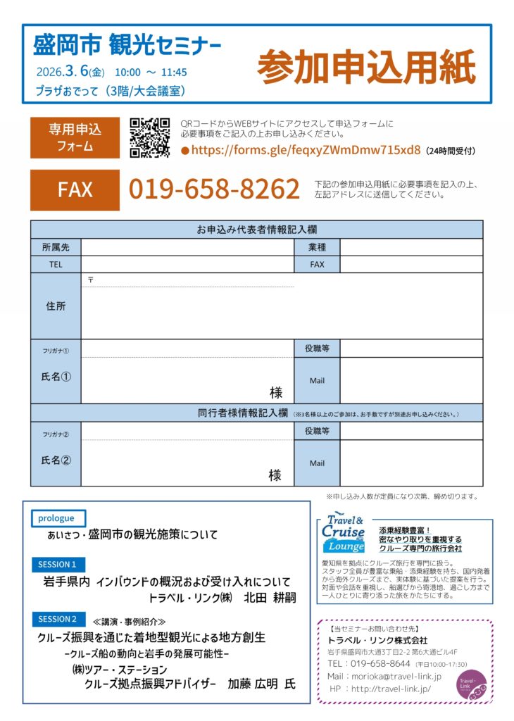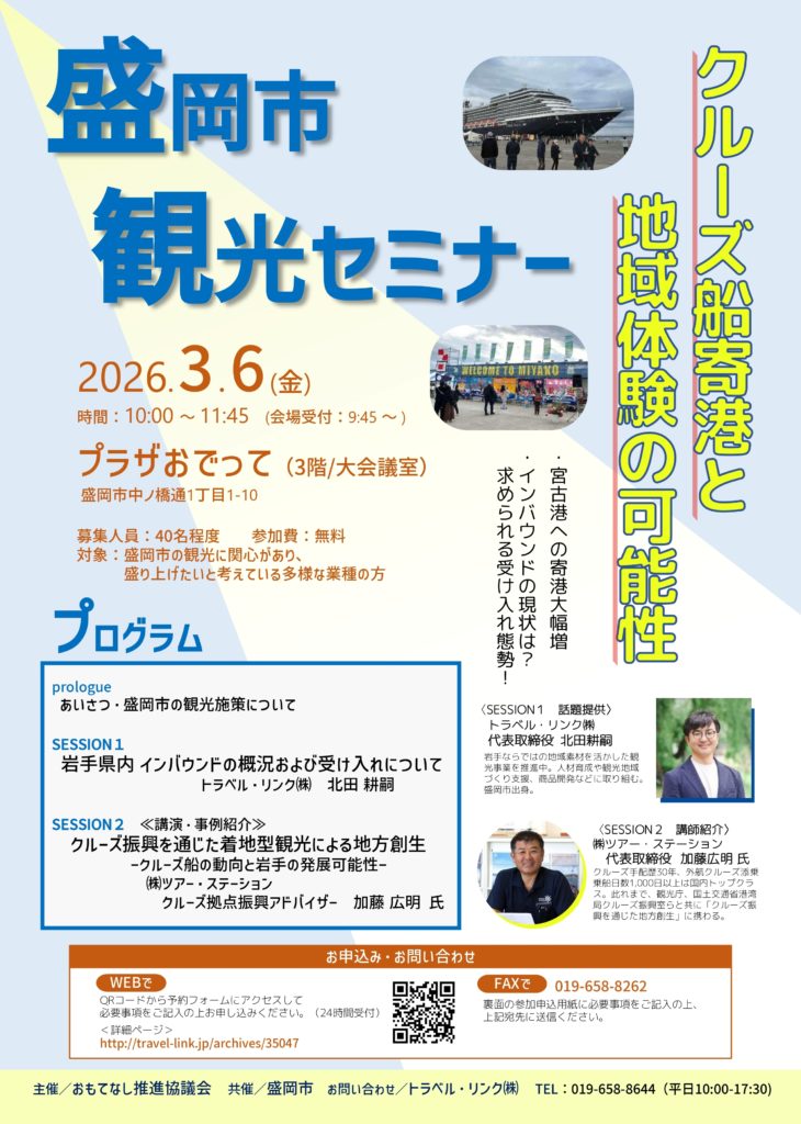 【募集中】R8『盛岡市 観光セミナー』-クルーズ船寄港と地域体験の可能性-